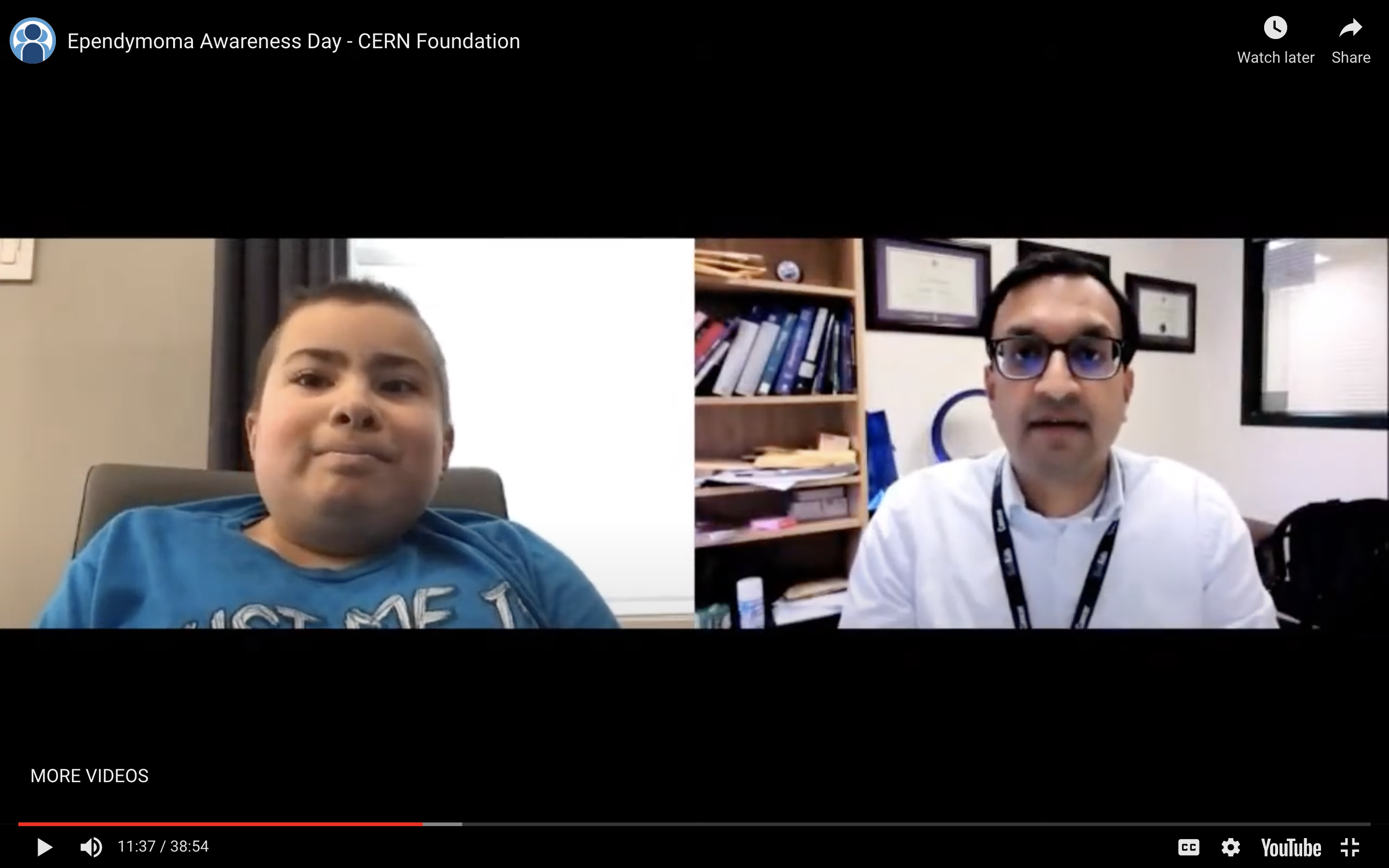The first three educational videos feature previous CERN Fellowship Recipients, a prestigious award given to young investigators to conduct ependymoma research and encourage an interest in ependymoma work. Robert Connor Dawes Foundation is a prominent partner in the fellowship program.