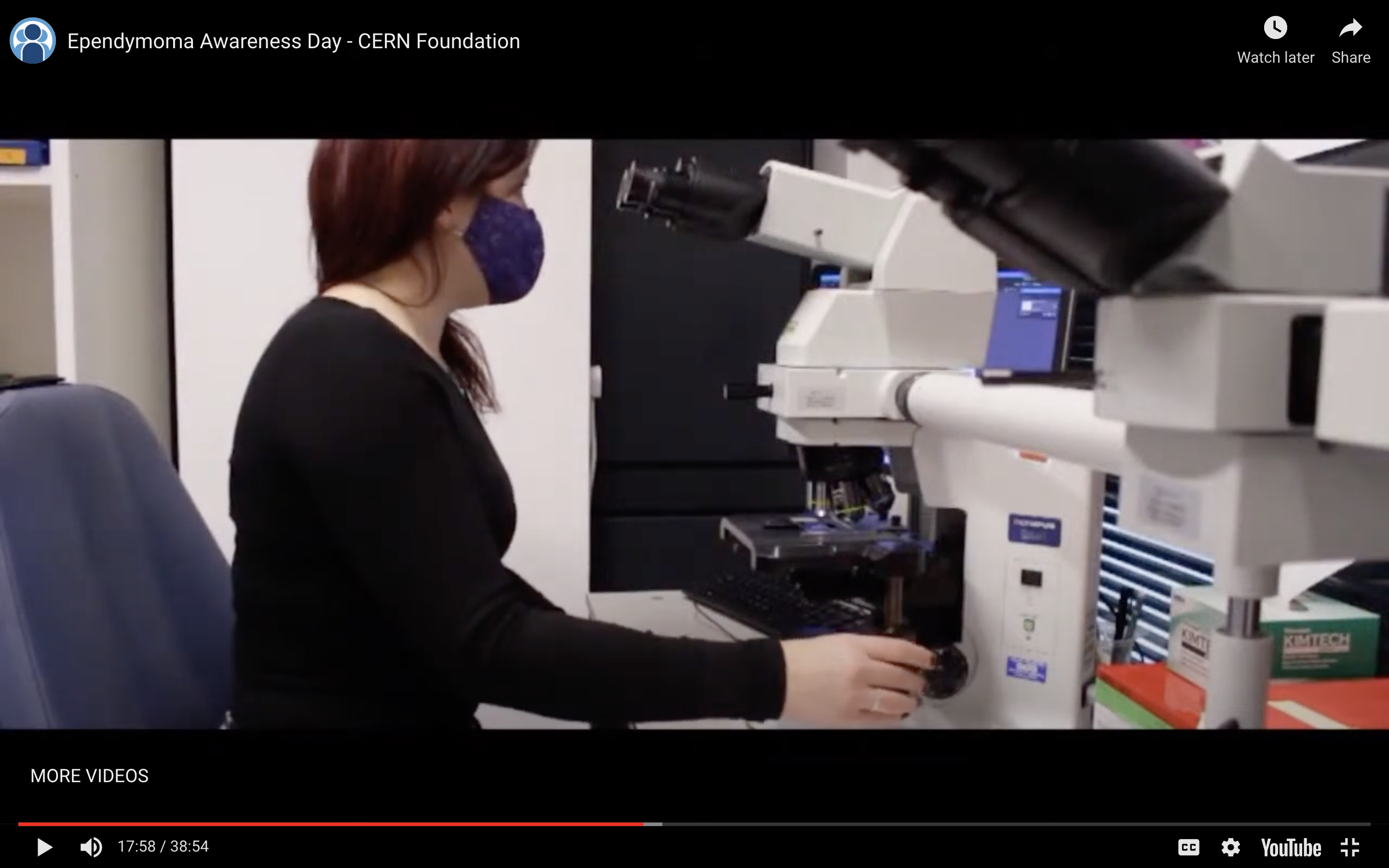About: Join Dr. Claire King, 2018 CERN Robert Connor Dawes Pediatric Fellowship Recipient on a behind the scenes tour of the Gilbertson Group lab at Cambridge and learn about the intricate work of performing molecular diagnostics for ependymoma.