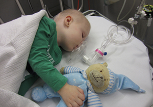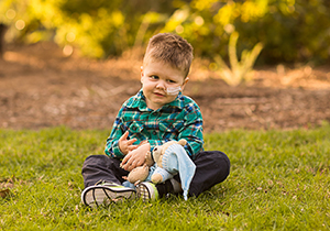 Sadly, Ethan has been left with palsy on the left side of his face. He is just now starting to learn to eat and drink again due to ongoing problems with swallowing (having received all of his nutrition through nasogastric or nasojejunal tubes). He has had to learn to sit, crawl and walk all over again. Ethan’s challenges are made all the more difficult because he is non-verbal, and he was recently diagnosed with autism. Nonetheless, the magnitude of the challenges that Ethan faces on a daily basis is only matched by the courage and spirit with which he faces them.