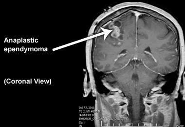Below is an image of anaplastic ependymoma in an adult patient from the coronal view: